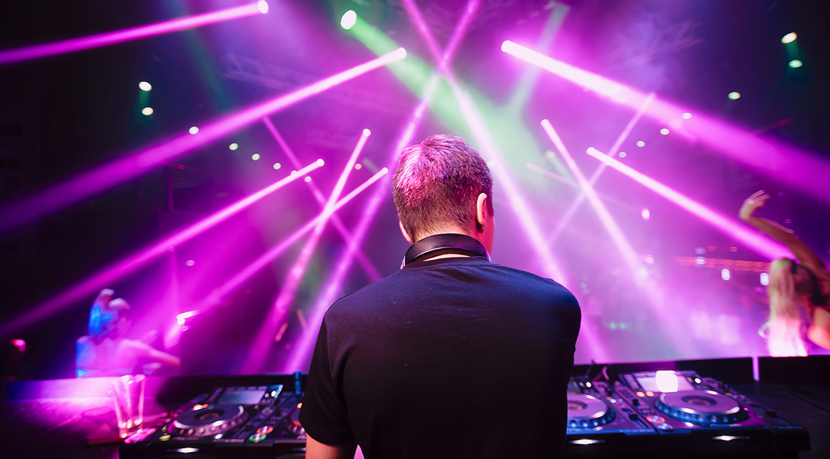 Dj,With,Headphones,At,Night,Club,Party,Under,The,Blue